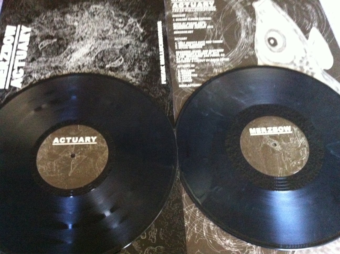 THAT’S RIGHT FOLKS……..WE AT ACTUARY HAVE BEEN WORKING HARD IN OUR QUEST TO BRING YOU THE BEST IN SOUND DESTRUCTION AND EXPERIMENTATION THAT WE CAN, AND OUR LATEST EFFORTS MAY EVEN BE OUR BEST YET (MAYBE). AT NY RATE, WE HAVE TEAMED UP WITH MASAMI AKITA TO BRING YOU “FREAK HALLUCINATIONS”…….AND EPIC 12” BANGER IF THERE EVER WAS ONE…..MERZ BRINGS YOU A SOLID 18 MINUTE TRACK OF THE SOUND YOU HAVE COME TO KNOW AND LOVE…….THE ACTUARY SIDE DISHES OUT 3 TRACK OF BEAUTIFULLY HARSH NOISE AND SOUNDSCAPES, TWO OF WHICH FEATURE VOCAL WORK FROM C. DODGE AND FETUS K……BOTH SIDES ARE MONUMENTAL IF WE DO SAY SO OURSELVES, BUT DON’T TAKE OUR WORD FOR IT…..